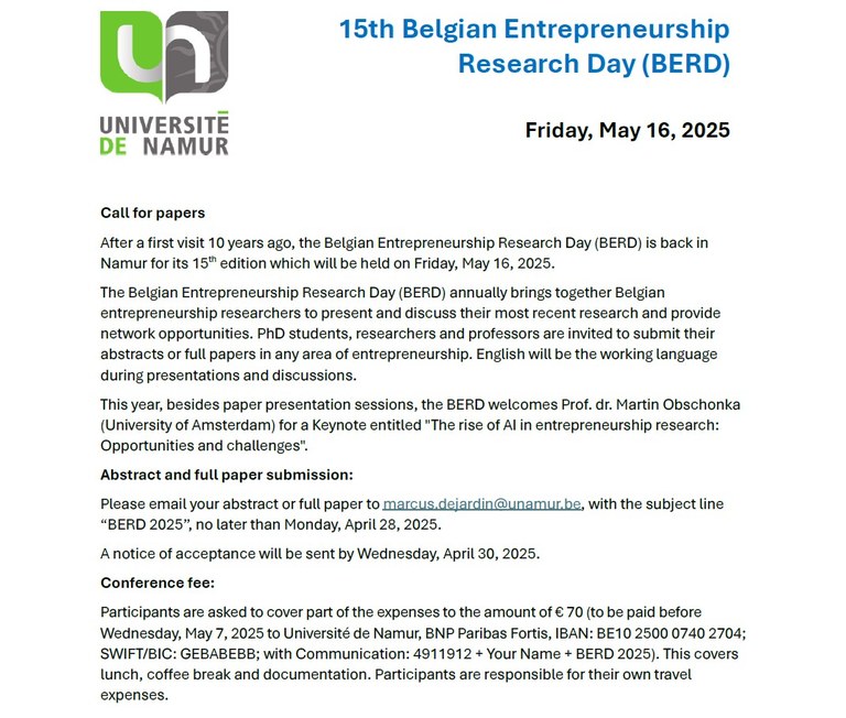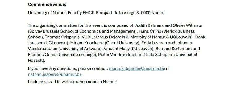 Lieu : E36 – 3e étage de la Facultés des sciences économiques – Rempart de la Vierge 8, Namur